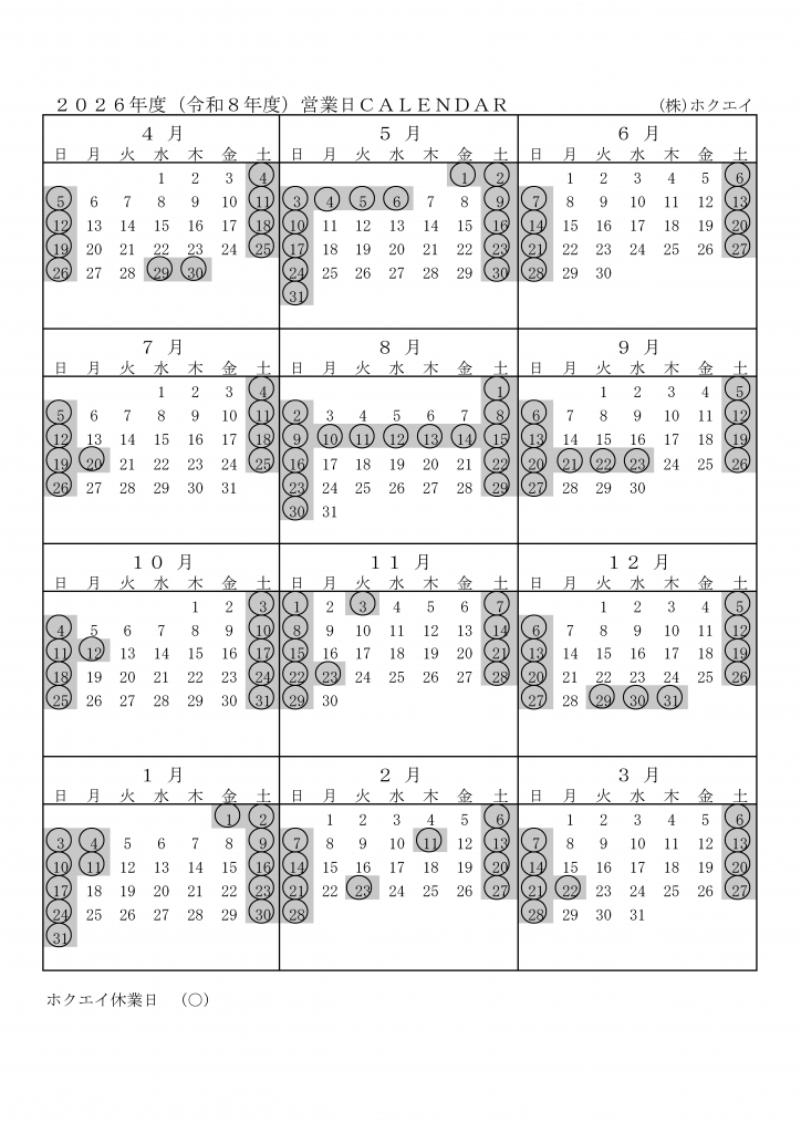 このたび、2026年度の営業日カレンダーを公開いたしました。